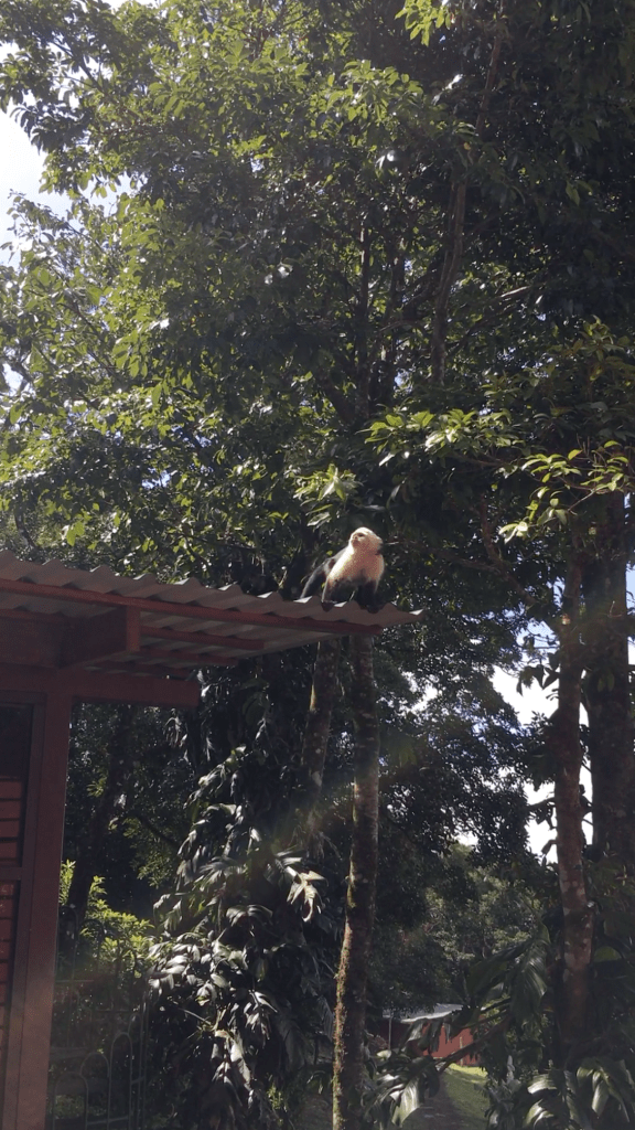 Mi godo il momento e, una mezz’oretta dopo, sono al tavolo della colazione nel patio, in compagnia dell’amichevole famiglia di ticos — come benevolmente sono soliti definirsi i costaricensi — che mi ospita. Graditi intrusi, una dozzina di cebi cappuccini che mi osservano curiosi dai rami degli alti alberi circostanti.