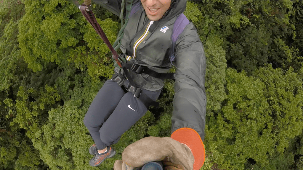 Gli istruttori raccolgono un gruppo di circa venti persone e, una volta raggiunto il silenzio, il più esperto di loro inizia a spiegarci come spostarci tra un albero e l’altro.